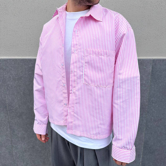 Camicia crop riga rosa