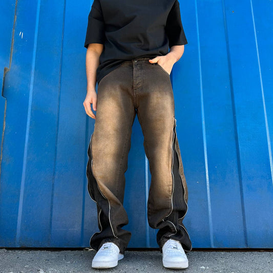 In offertaJeans flare con zip sabbiato