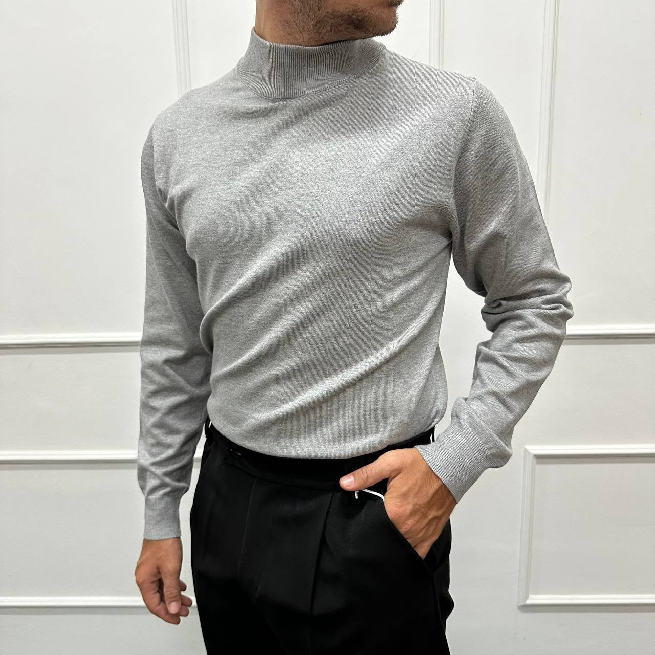 Mezzocollo in cotone caldo grigio
